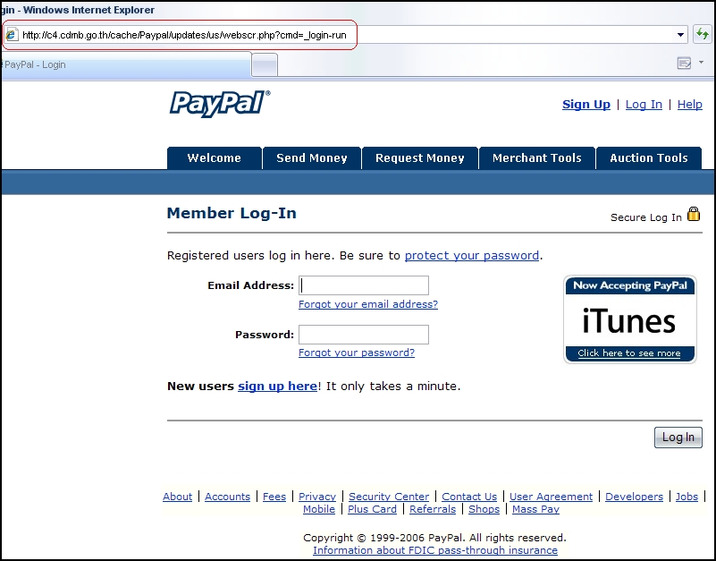Al dar clic a dicho enlace lo llevara automáticament http://www.nkp.go.th/templates/config.php, el cual es una pagina clonada de dicho banco, en este se le pedirá que ingrese su No de Tarjeta y Clave: Una vez que haya ingresado estos datos, el atacante tendrá control total sobre su cuenta: como son comprar por Internet, movimientos, transferencia de saldos, etc. Una vez que haya hecho uso de este enlace, este dejara de funciona, es decir si da clic por segunda vez esta vez lo llevara a la pagina oficial de dicho Banco, esto con el fin de no levantar sospechas. Lo que nos hace suponer que el envió es personalizado, es decir que cada cliente recibirá un enlace diferente, por favor tenga cuidado. Recomendaciones: - Un Banco