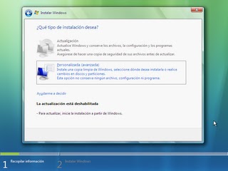 Elige entre una instalación limpia o una actualización según si se instala en un disco duro vacío o sobre una instalación de Windows existente, en este caso se conservan todos los datos.