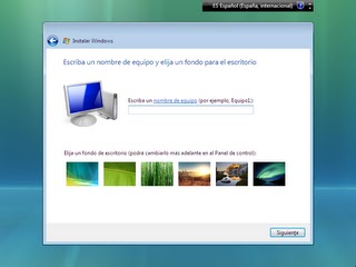 Escribe un nombre para identificar el equipo dentro de una red y elige el fondo de escritorio que quieras usar. Puedes cambiarlo posteriormente. Pulsa a continuación el botón Siguiente.